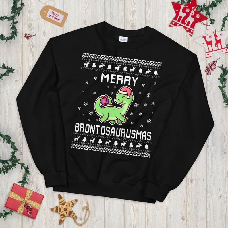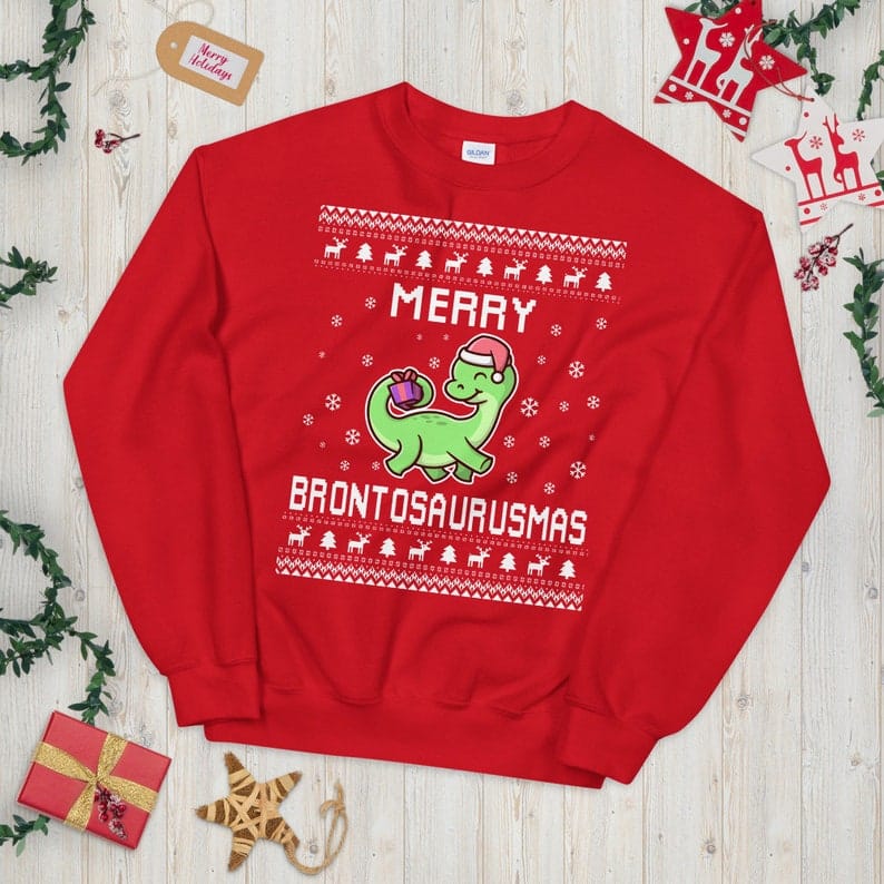Looking for a funny Christmas sweater that doubles as a thoughtful gift? This Brontosaurus Ugly Christmas Sweater is a top pick for: