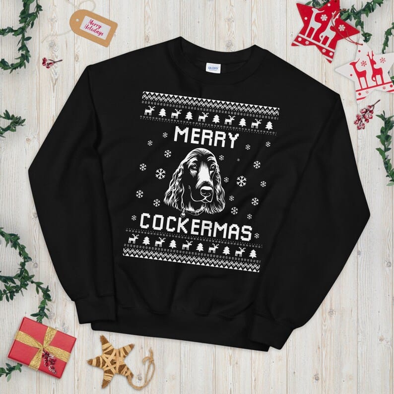 Celebrate the holidays with this adorable Cocker Spaniel ugly Christmas sweater that perfectly captures the festive spirit and lovable charm of these beautiful dogs. Ideal for anyone who adores their Cocker Spaniel and wants to show off their breed pride at every holiday gathering.