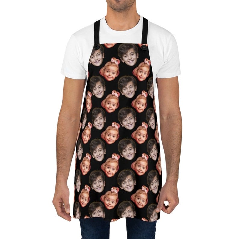 Introducing the ultimate Father’s Day gift idea: a custom apron adorned with the faces that mean the world to Dad. This isn’t just any apron; it’s a heartfelt expression of love and appreciation, wrapped in practicality and style.