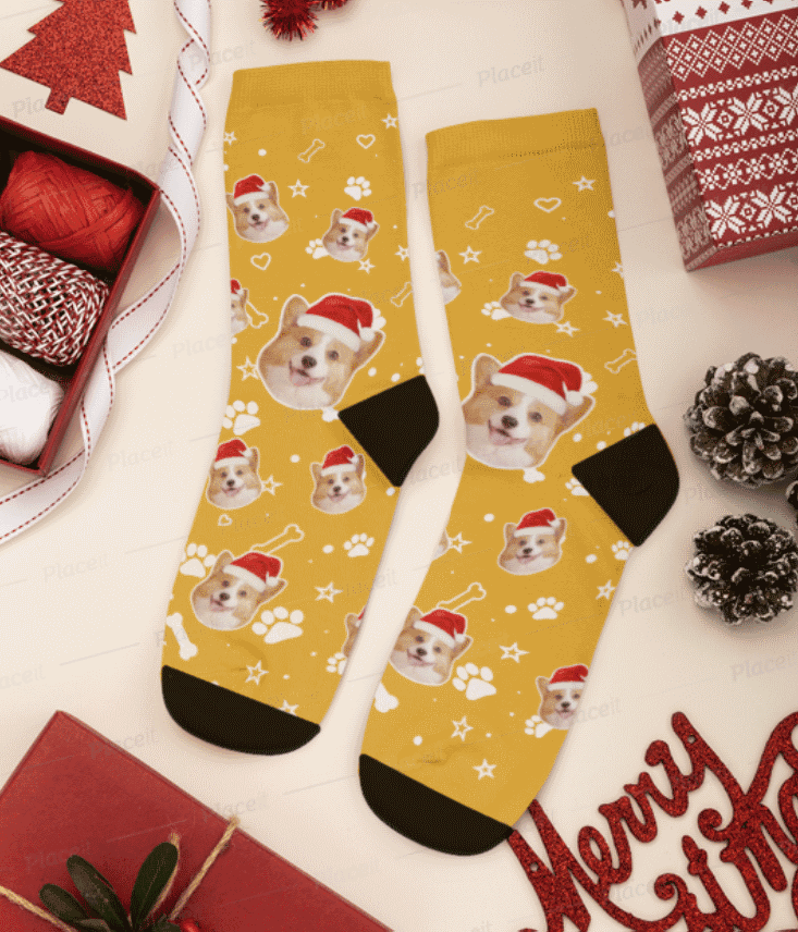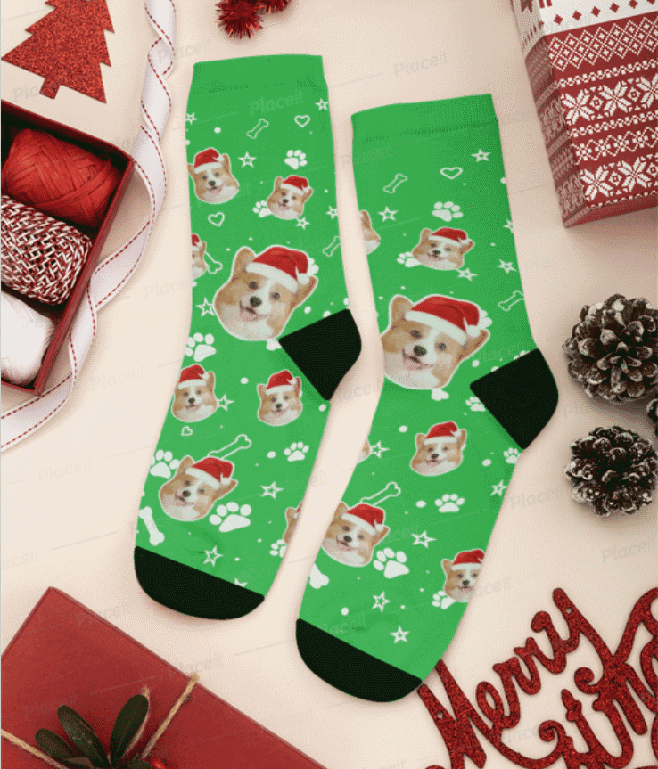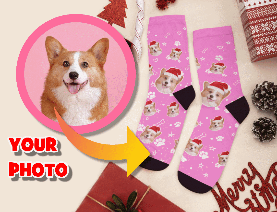 Do you like personalized gifts? We love them too. We have great news for you! We have personalized socks with your dog’s face on them.