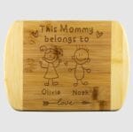 Celebrate the extraordinary bond you share with your Mom this Mother’s Day with our Personalized Mom Cutting Board, a heartfelt and practical gift that captures the essence of your relationship. Tailored for Mother’s Day or any occasion, this maple cutting board isn’t just a kitchen accessory; it’s a personalized masterpiece that honors the cherished connection between mother and her beloved daughter(s) or son(s).