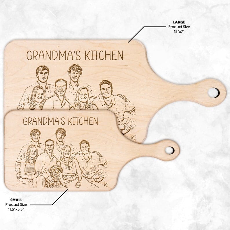 Capture Your Family’s Memories with a Personalized Engraved Family Picture on Wood Grandma Cutting Board with Handle: The Ultimate Gift for Grandma or Mother’s Day Gift for Granny