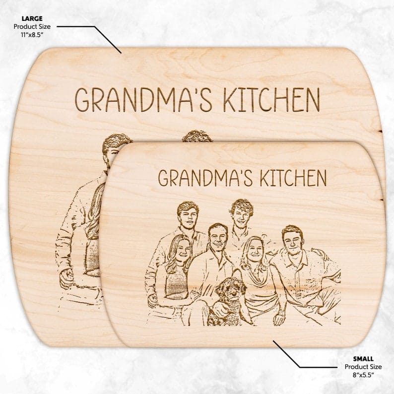 Transform your kitchen into a gallery of cherished memories with our Personalized Family Keepsakes. From cutting boards to other meticulously crafted items, infuse every corner of Grandma’s kitchen with the essence of your family’s journey.