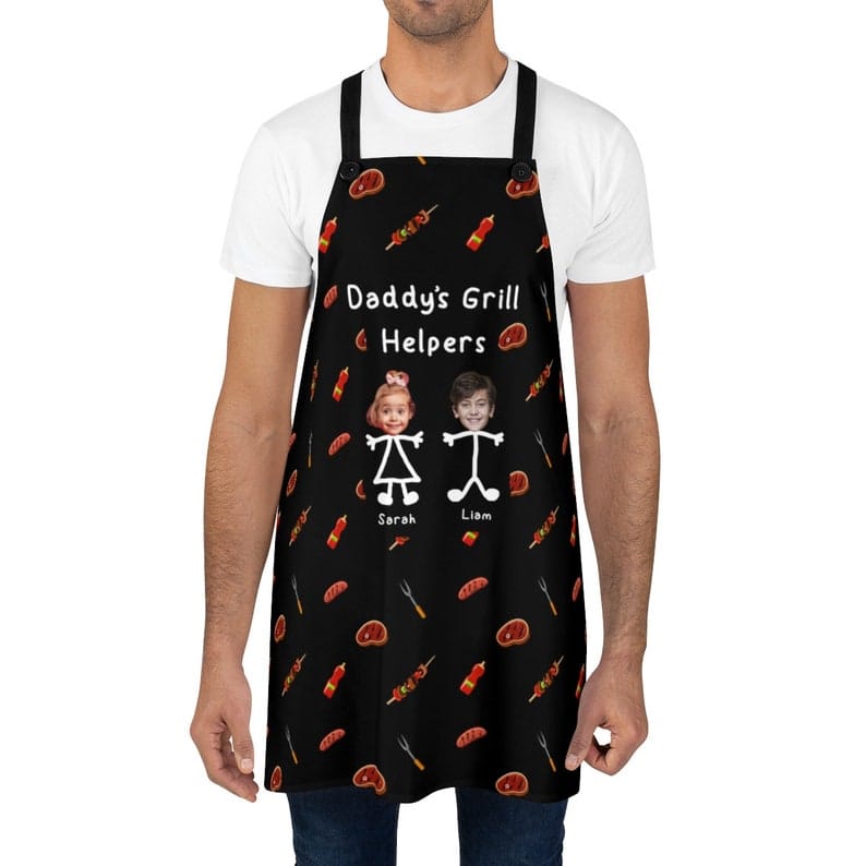 Grill Apron for Dads: Personalized Touch Let Dad flaunt his grilling skills in style with this custom apron featuring his kids’ faces, a heartfelt reminder of his biggest fans.