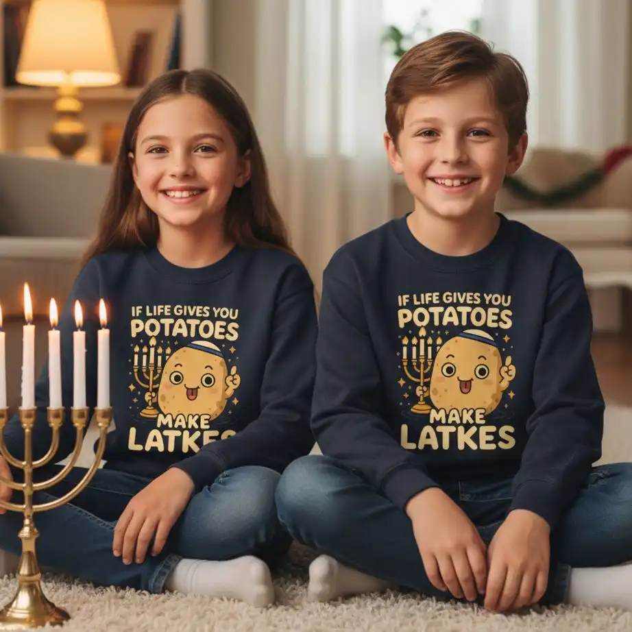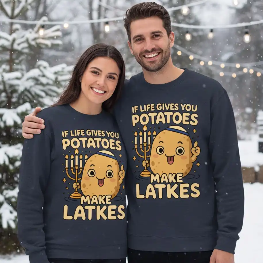 Hanukkah Latkes Sweatshirt – Funny Potato Design for Jewish Holiday Fans