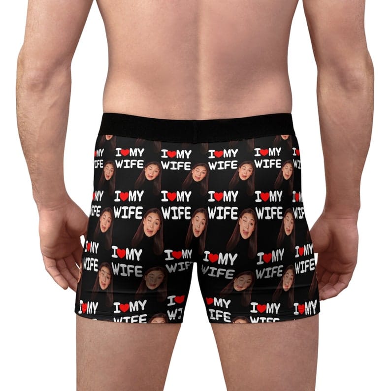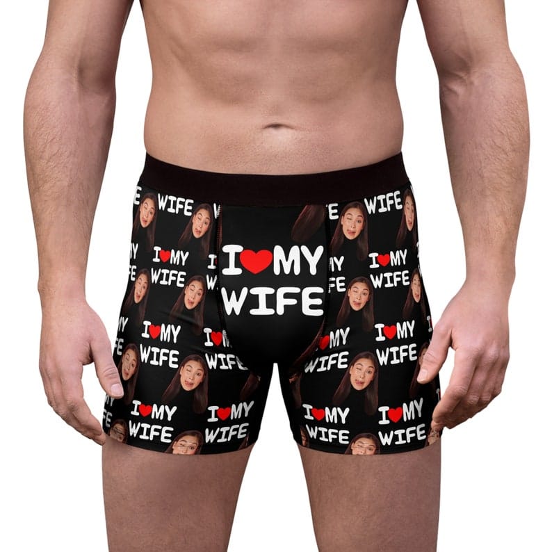 Make your husband smile every morning with the personalized “I Love My Wife” boxer briefs. Perfect for Valentine’s Day or your anniversary, these custom photo boxers for husbands are a fun and romantic gift that puts your face right in the design. It’s a unique gift for husband that he’ll love to wear, featuring a heartfelt message and your picture.