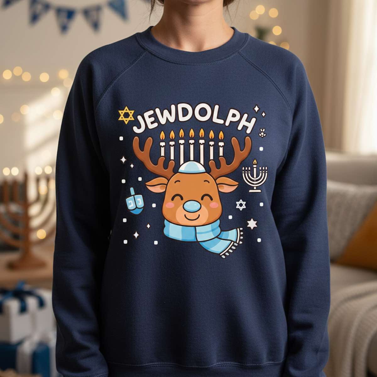 Jewdolph Hanukkah Sweater – Funny Reindeer Gift for Jewish Holiday Fans