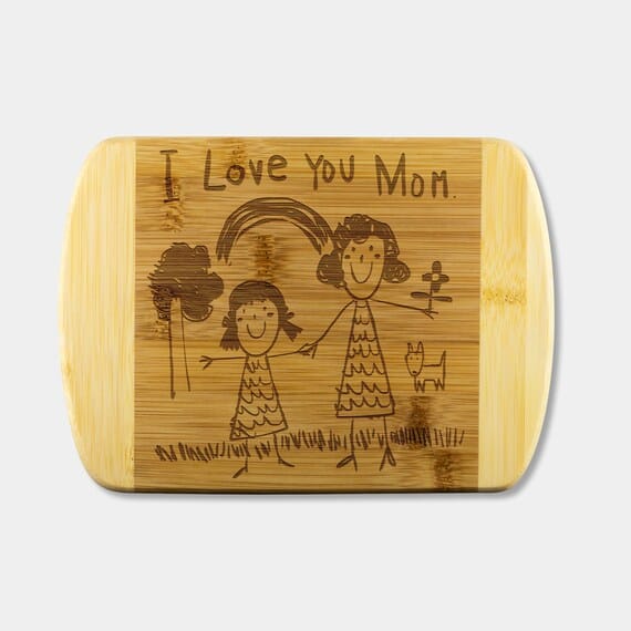 Personalized Engraved Kids Drawing Cutting Board Gift for Mom