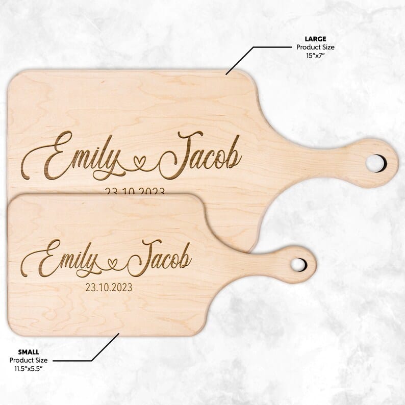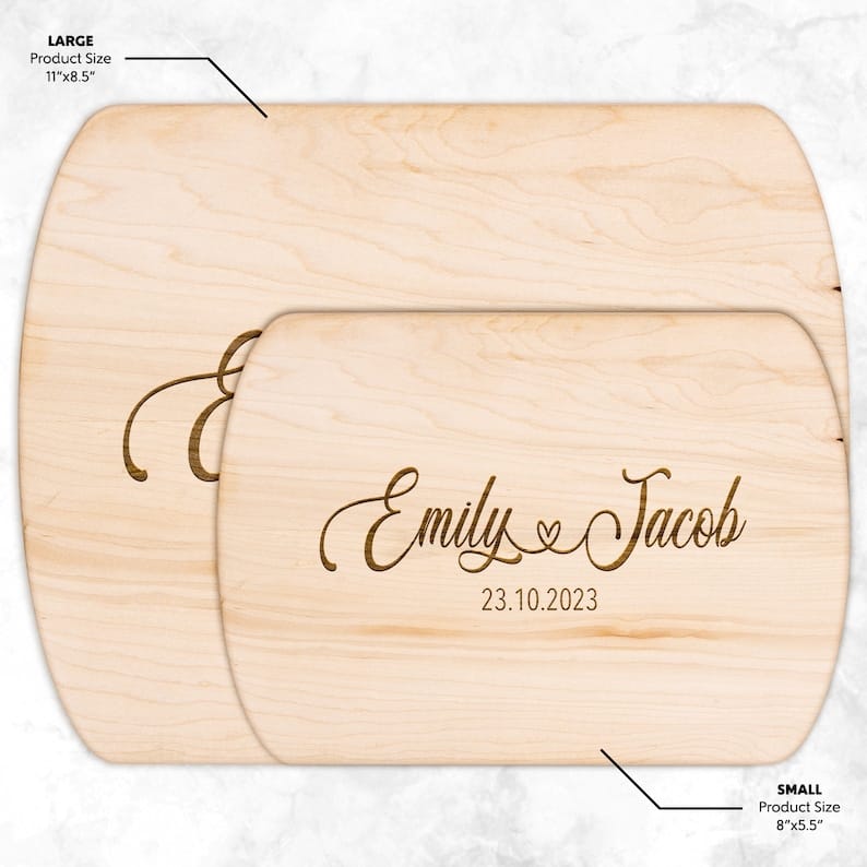 Make your wedding memorable with our personalized heart cutting board. Engrave your names in a beautiful cursive font, creating a timeless keepsake that celebrates your love.