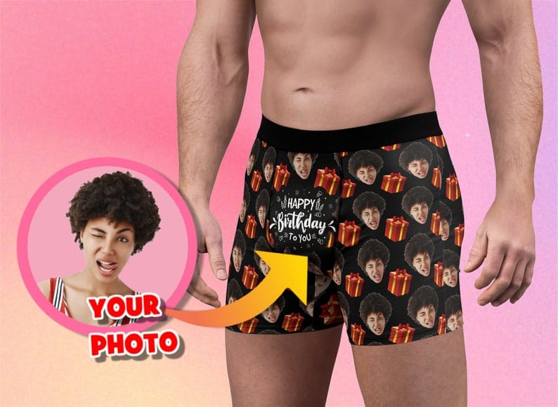 Perfect Gift Idea: Looking for a funny boyfriend gift idea? Look no further than our Personalized Birthday Underwear for Boyfriend or Husband. Whether it’s his 21st birthday or his 50th, these custom face boxer briefs are sure to be a hit. Surprise him with a gift that’s as unique and special as he is, and watch his face light up with joy.