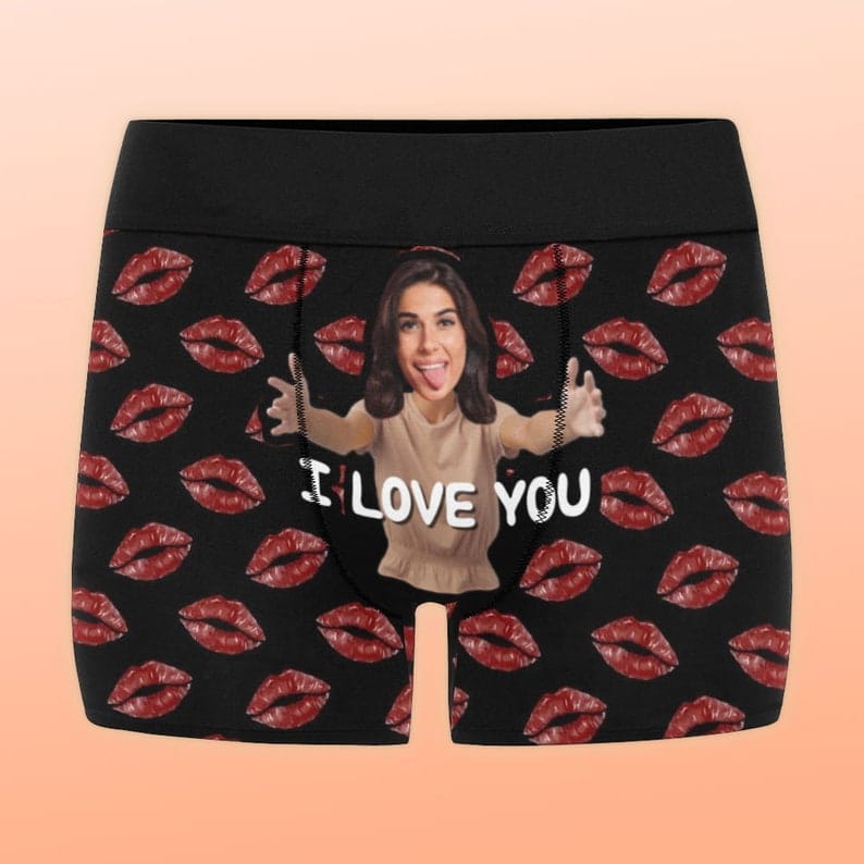 Picture husband briefs are a creative gift idea. They stand out from traditional gifts and add a humorous twist. The image of your face on the black men’s boxer briefs, with the text “I love you” below, makes them special. These briefs are an excellent boyfriend or husband birthday gift idea as well.