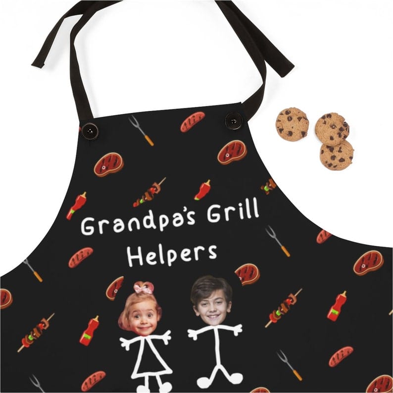 Personalized Grandpa Apron “Grandpa’s Little Helpers” with Grandkids Photos and Names is a perfect gift idea for any Grandfather. This custom photo apron is a particularly great present idea for those grandparents who love barbecue. If you want your grandfather to be proud every time he prepares a BBQ for you, then give him this personalized apron with a picture of his grandsons or granddaughters. We all know very well how connected granddaddies and their grandkids are and how much they love to be together, and with this personalized apron we are sure you will choose the ideal gift for your grandfather, because this is not just an ordinary gift, but becomes a lasting memory.