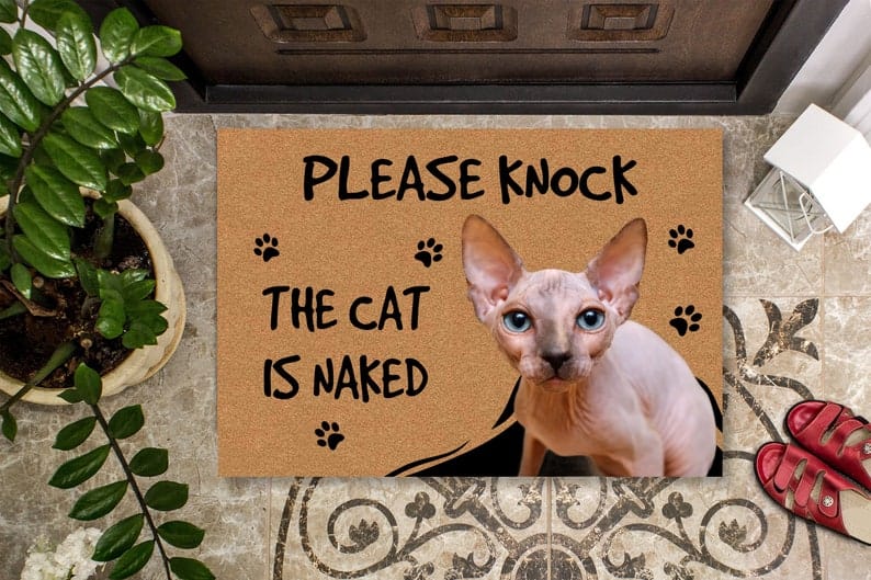 Personalized Sphynx Cat Doormat – Please Knock The Cat is Naked