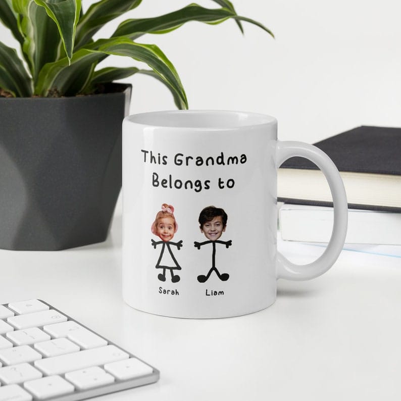 Personalized Grandma Coffee Mug with kids’ photos and names on it is a perfect gift idea for Mother’s Day, Grandma’s Birthday, or any other important date for your Grandmother. This Grandma Belongs to Coffee Mug is a cute present idea that every Nana would love to have.