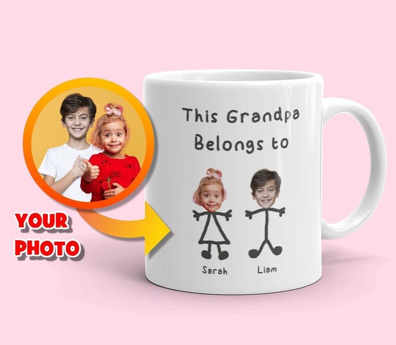 Personalized Grandpa Coffee Mug with kids’ photos and names on it is a perfect gift idea for Father’s Day, Granddad’s Birthday, or any other important date for your Granddaddy. This Grandpa Belongs to Coffee Mug is a cute present idea that every Grandpa would love to have.