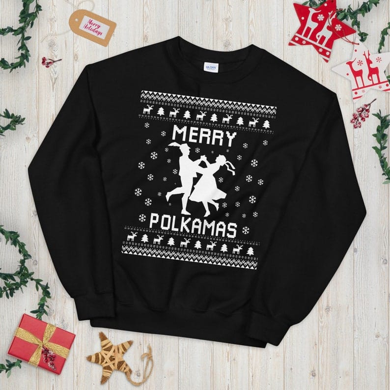 Celebrate your love of polka dancing with a cozy, personalized holiday sweatshirt that doubles as a funny Christmas sweater and novelty animal-style holiday jumper. Whether you’re looking for a matching Christmas sweater for family photos or a standout office Christmas party outfit, this festive design keeps you warm, stylish, and ready to dance through the season.