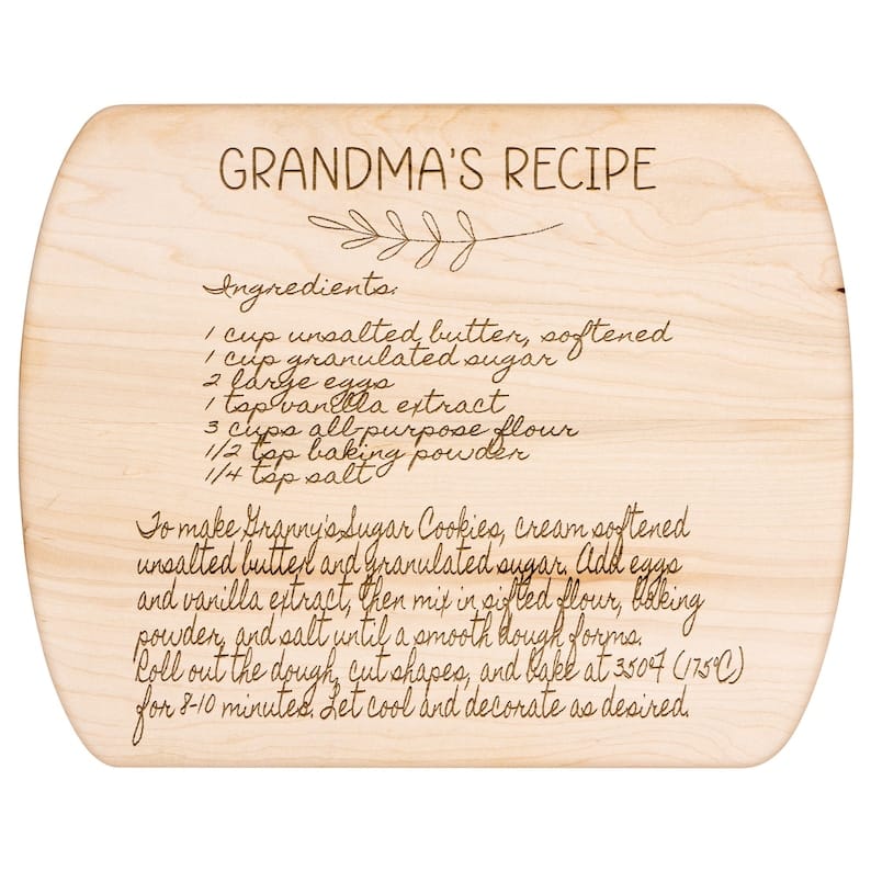 Looking for the perfect Mother’s Day gift that captures the essence of home and heritage? Introducing our exquisite Grandma’s Handwritten Recipe Cutting Board crafted from high-quality maple wood. This unique cutting board not only serves as a practical kitchen tool but also holds sentimental value as it immortalizes your grandma’s cherished recipes. Here’s why our cutting board is the ideal choice for a heartfelt and personalized gift.