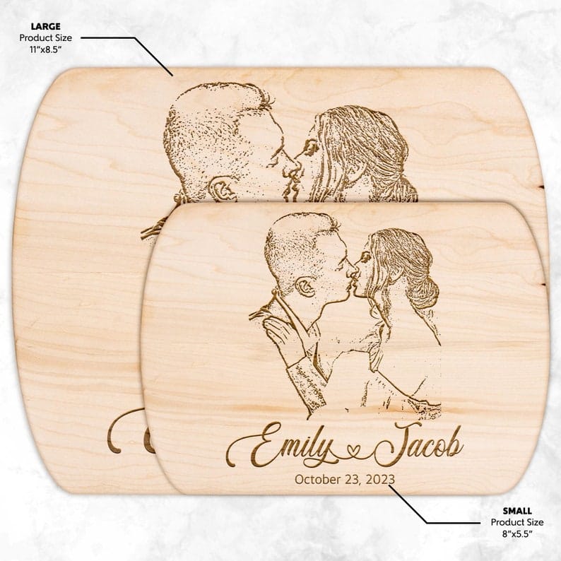 Whether for your spouse or a beloved couple celebrating their anniversary, our Custom Wedding Portrait Photo Cutting Board makes the perfect gift. With its personalized touch and timeless elegance, it’s a heartfelt gesture that will be cherished for years to come.